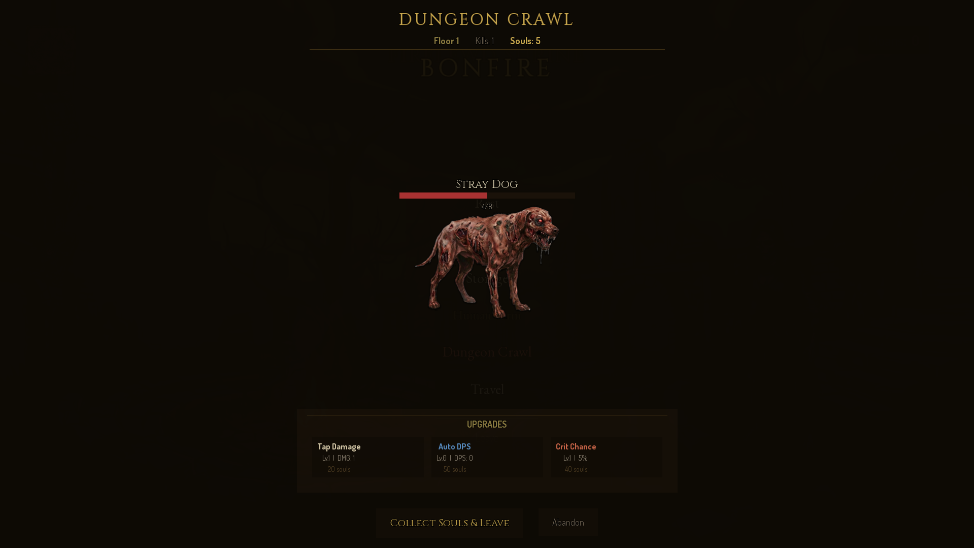 Level up at bonfires using souls. STR boosts melee damage, INT boosts spell power. Choose your build!